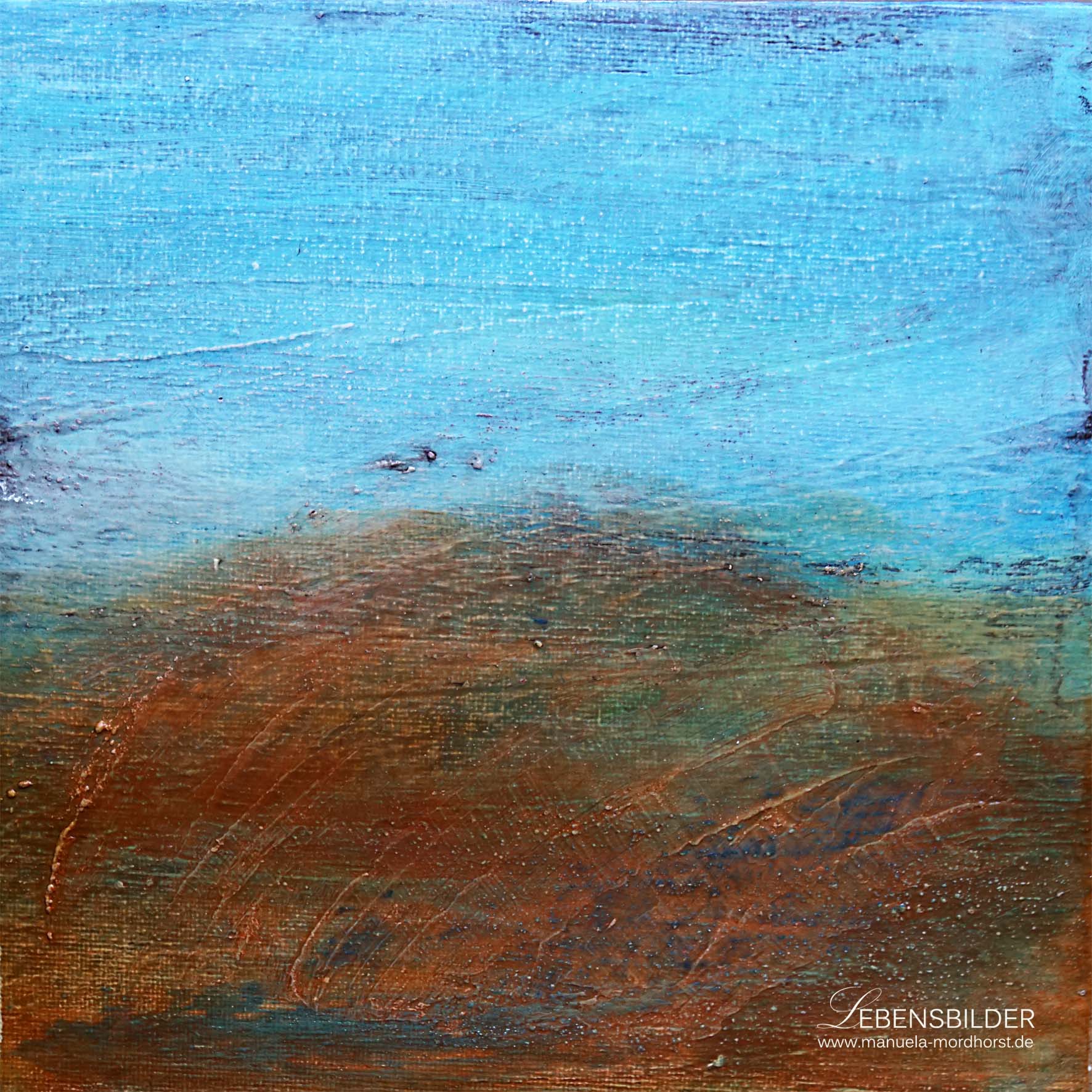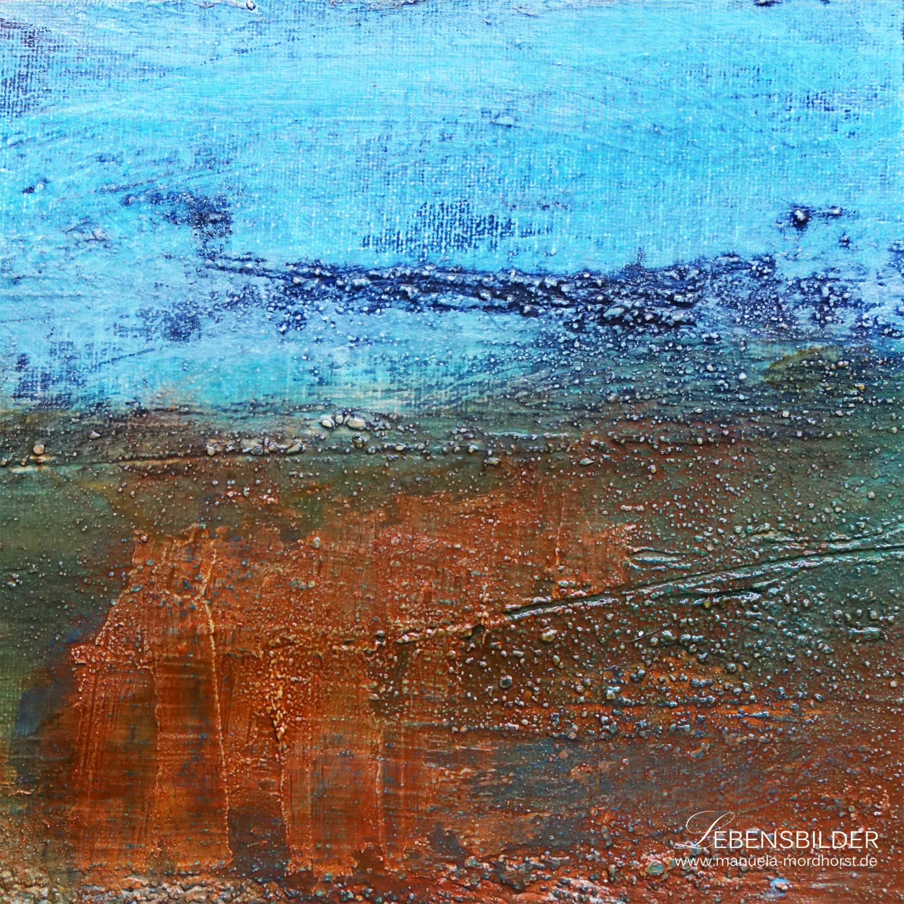 Gleichzeitig war es mir schon lange ein Bedürfnis eine kleine Mallorca-Serie zu fertigen, weil ich auch zu Mallorca einen innigen Bezug hege. Die Insel ist mir so bekannt wie meine eigene Hosentasche kann man sagen und ich kenne jeden Flecken, jede schöne Stelle, jede wunderschöne Bucht, selbst jetzt wenn ich meine Augen schliesse, kann ich den Duft Mallorcas abrufen und erinnern und genau das habe ich genutzt, um die Bilder zu malen. Dabei hatte ich die rotbraune Erde Mallorcas vor Augen, den vielfältig in seinen Farben changierenden Himmel und das Meer.