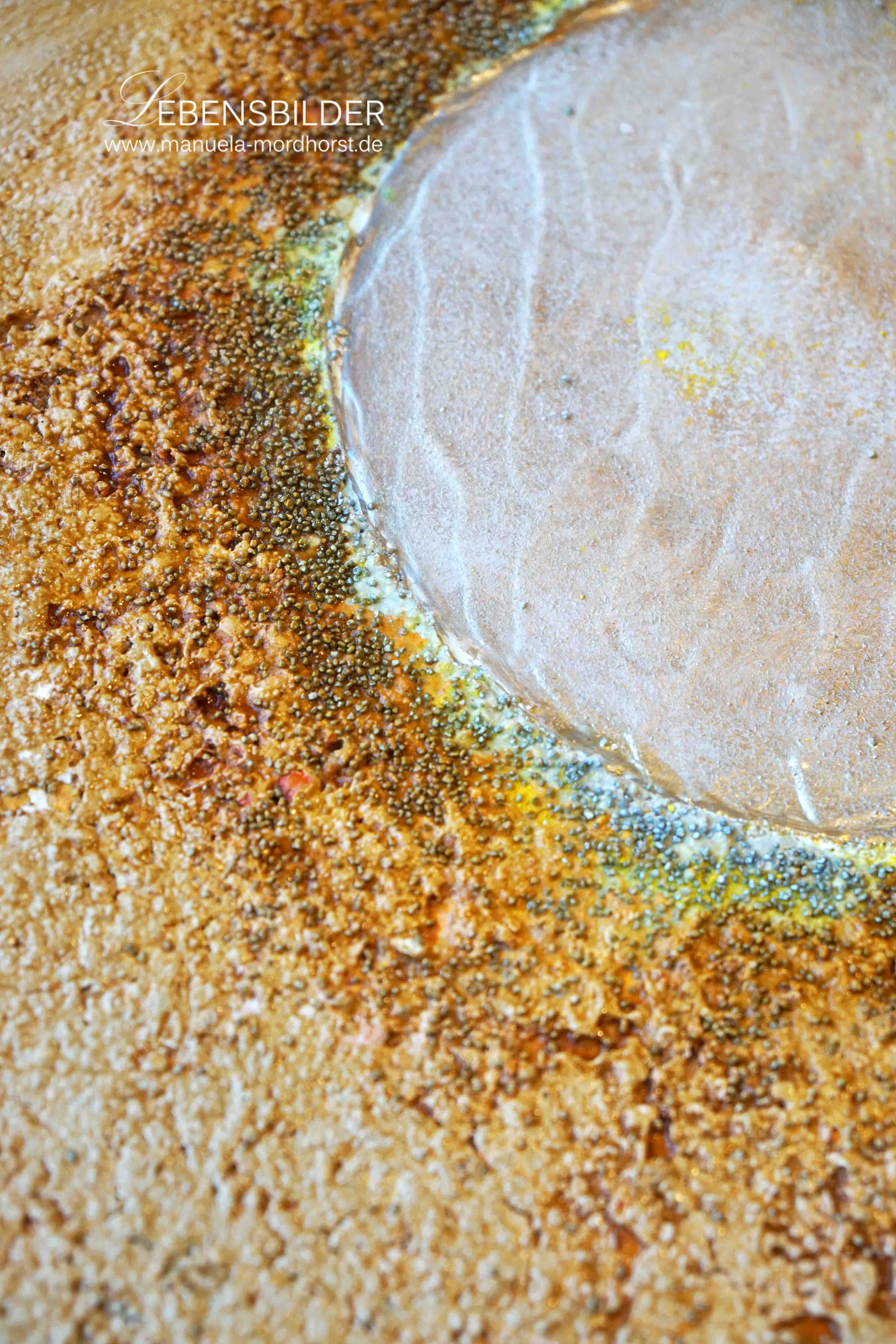 Wenn dieser Tatbestand auch nach Tagen immer noch gegeben ist, dann bin ich zuweilen bereit kurzen Prozess zu machen und schlichtweg zu übermalen. Meist entsteht dabei etwas viel Besseres, das sich dann auch sehen lassen kann und mich glücklich stimmt.