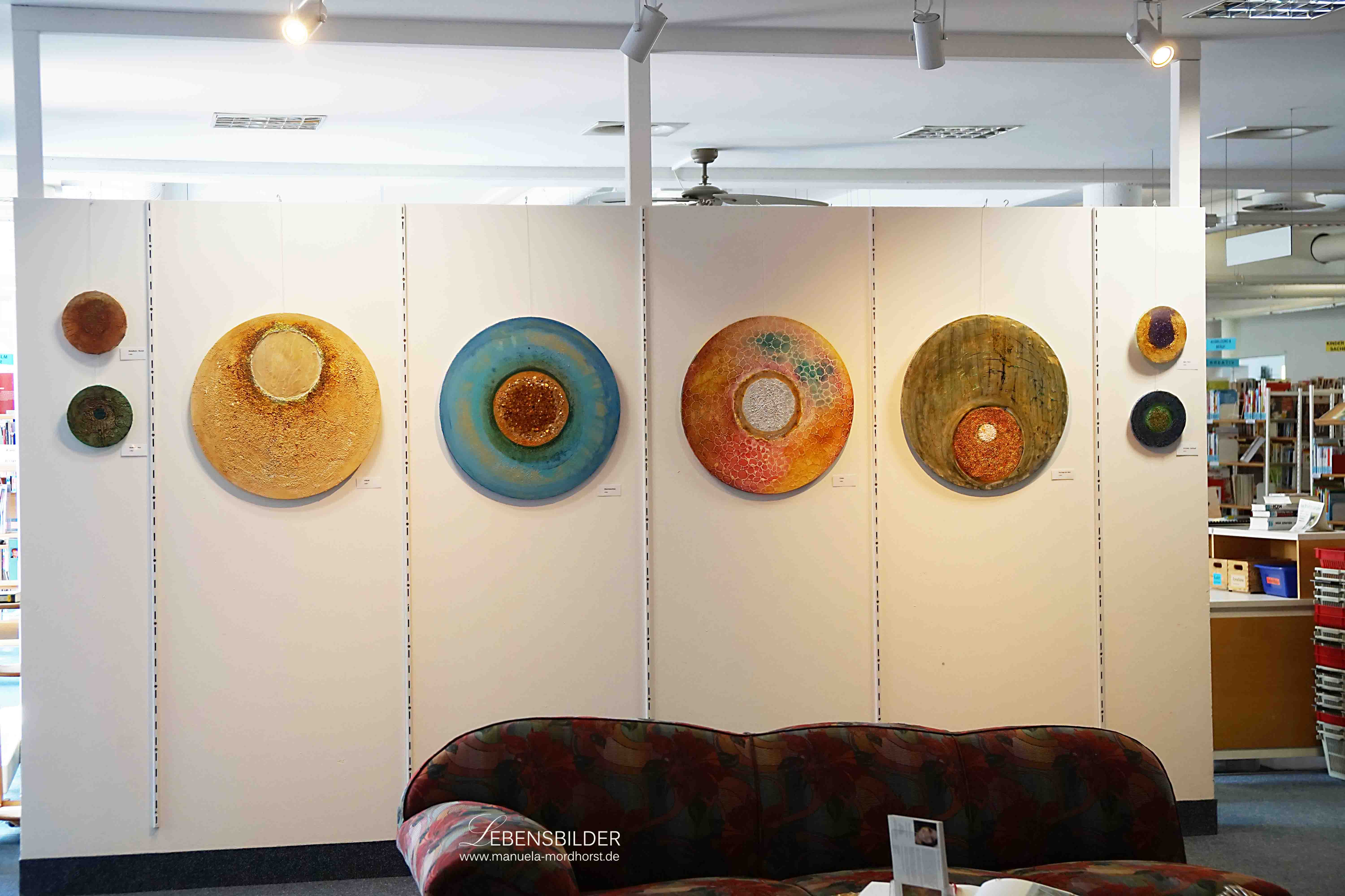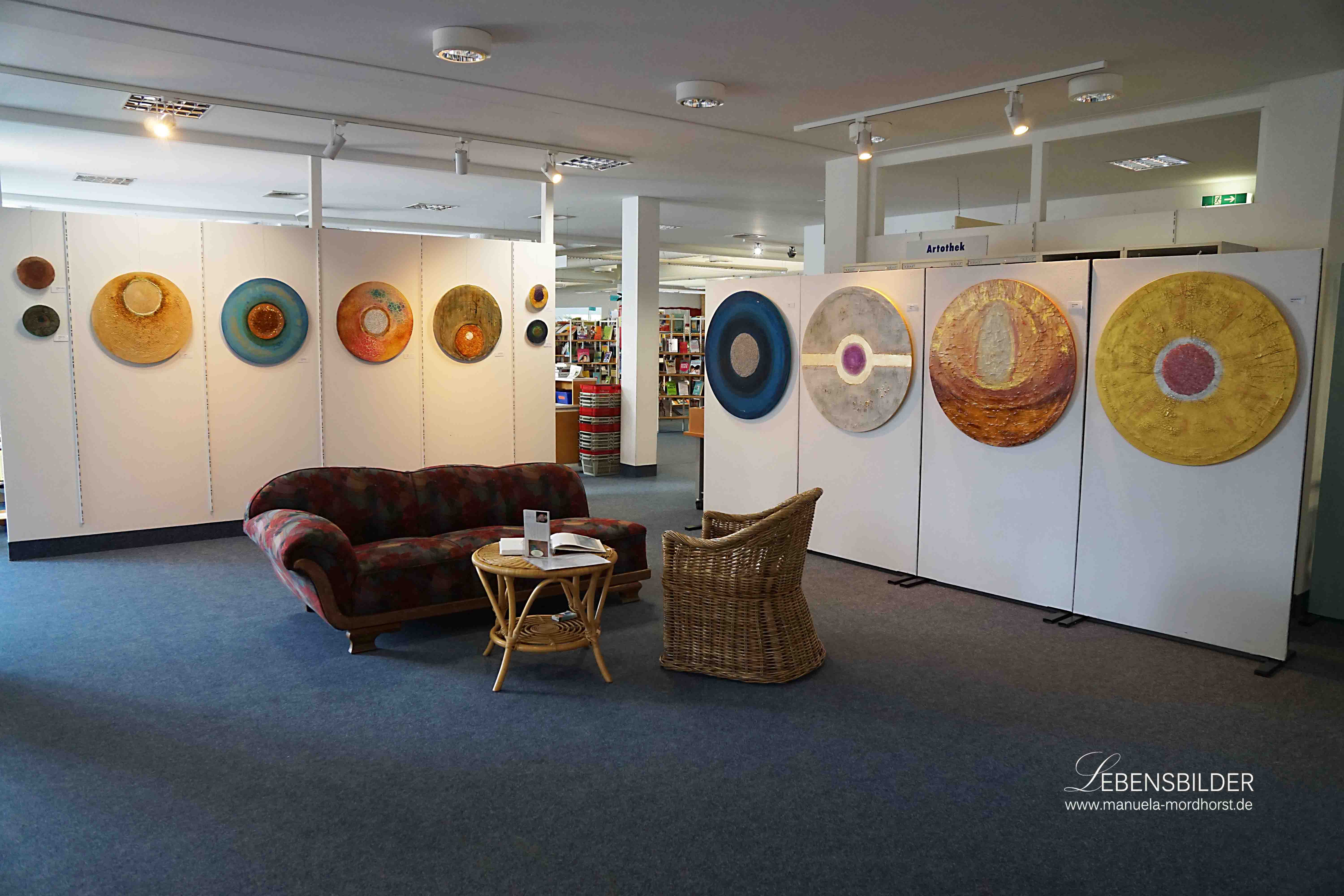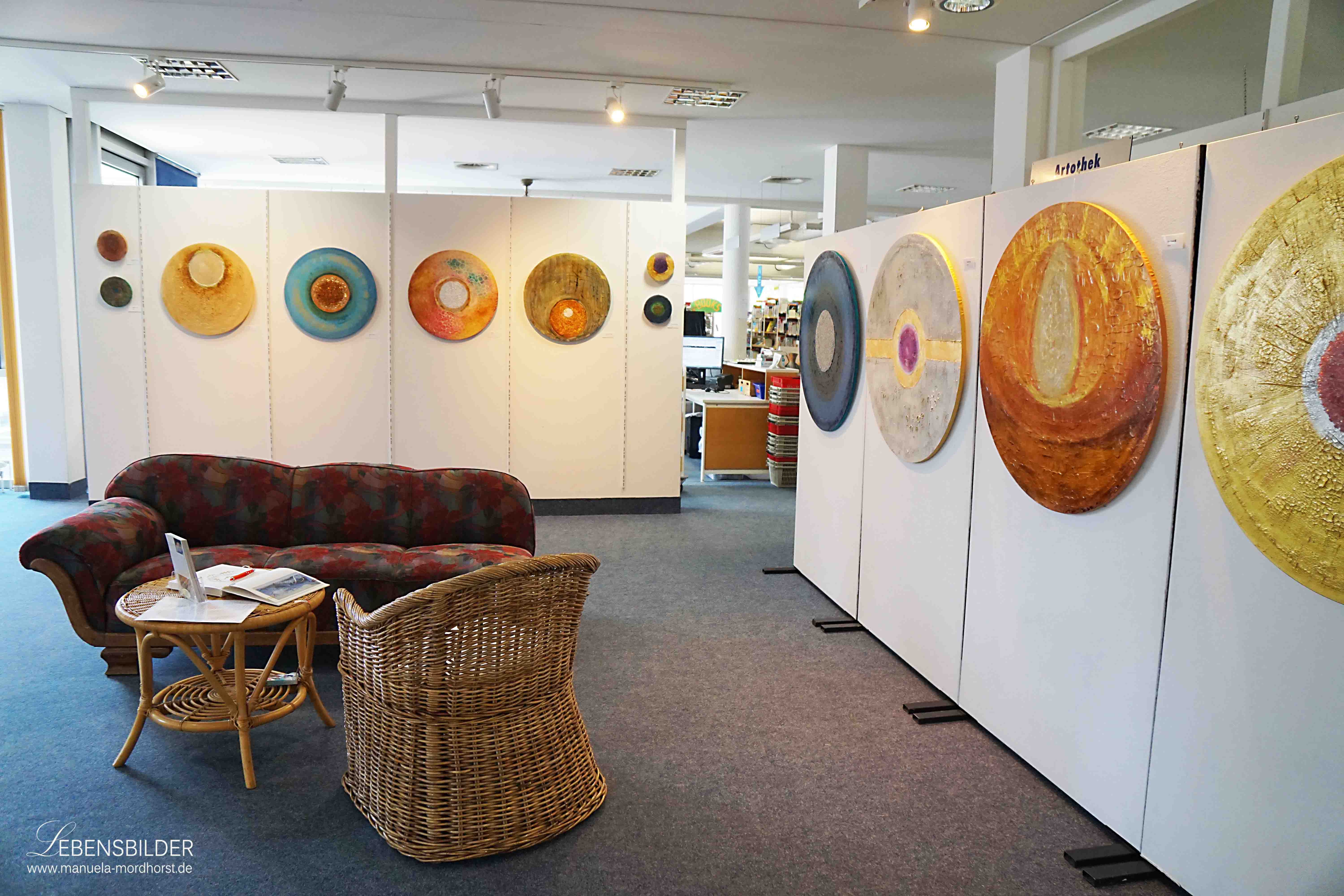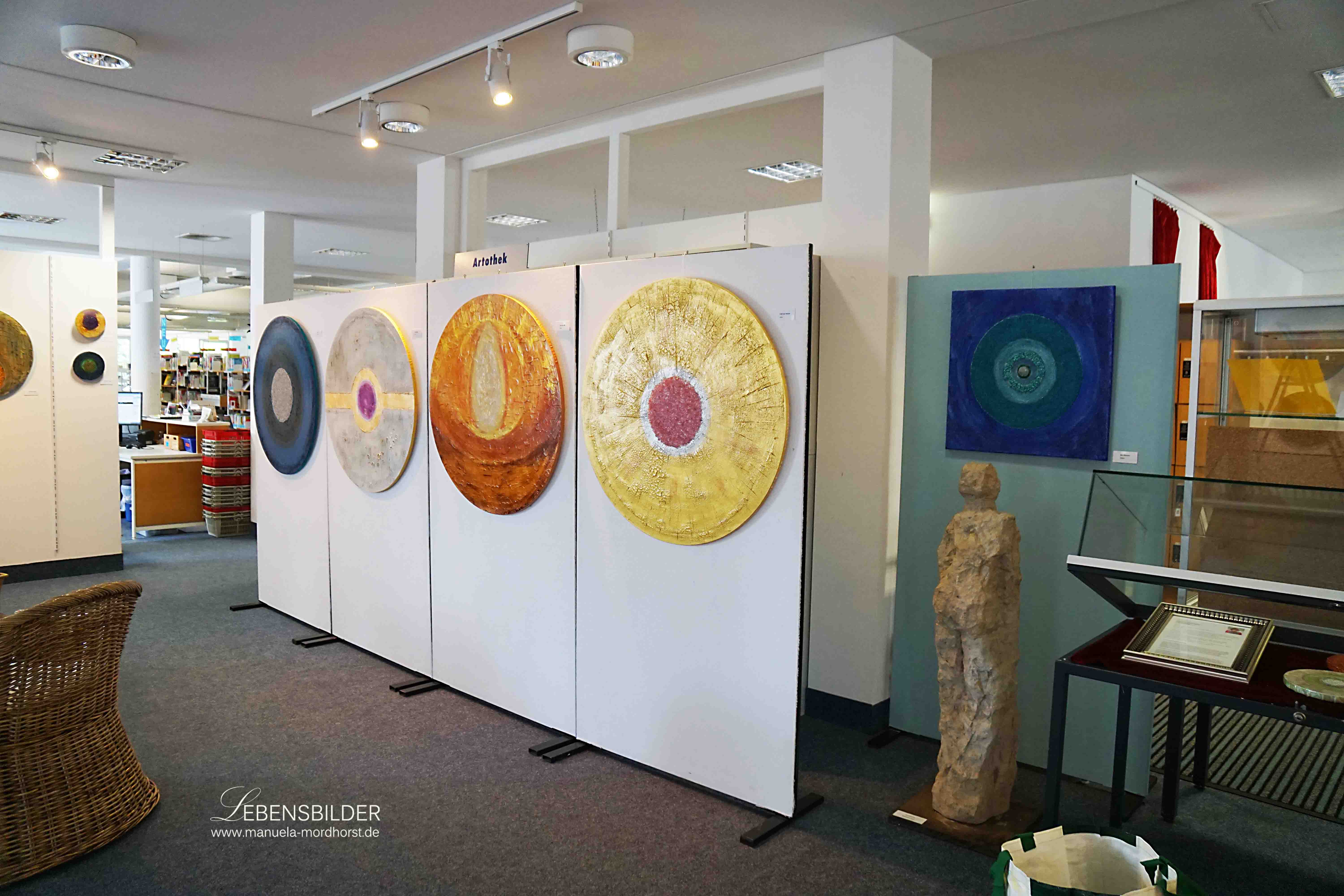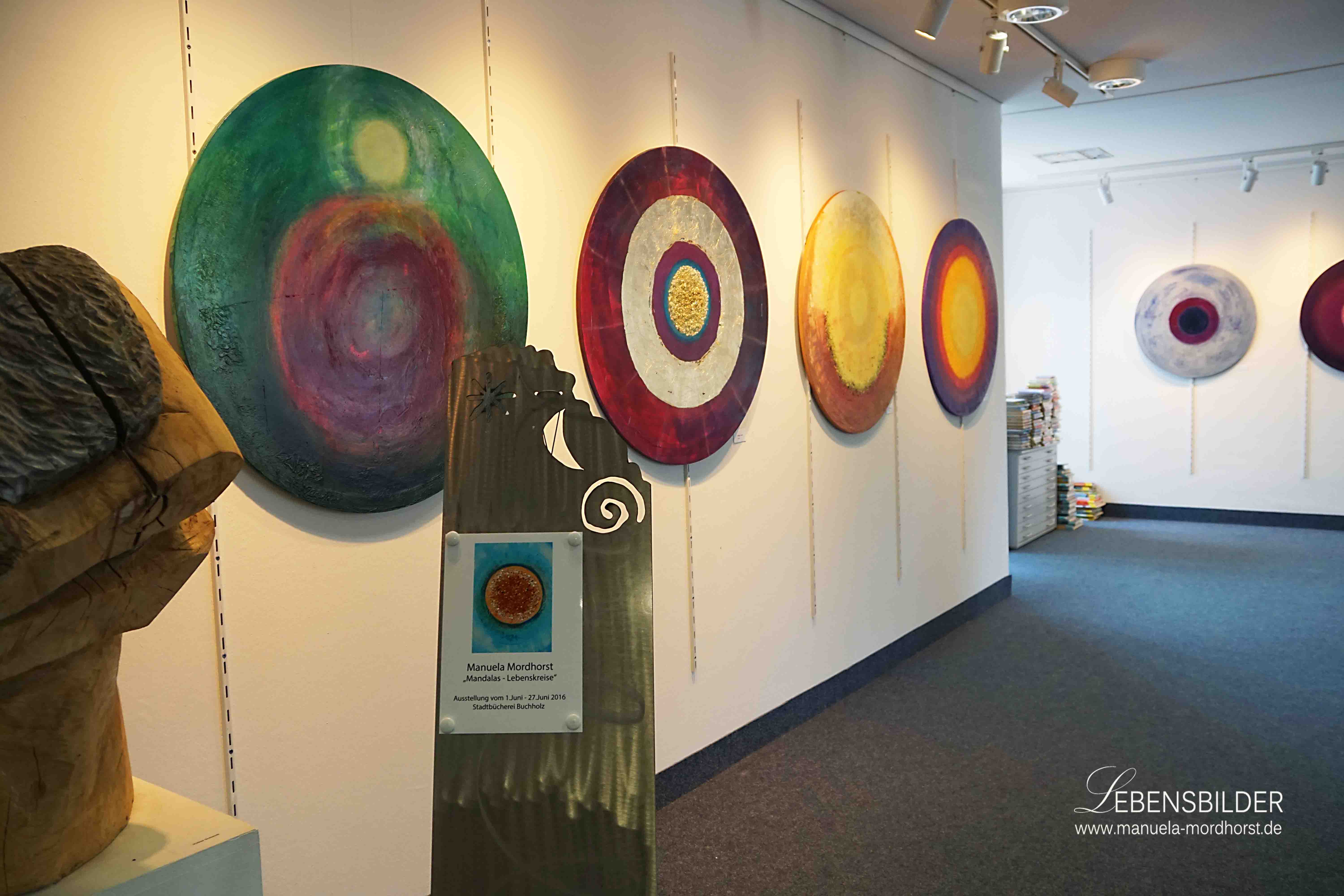 Hier möchte ich einmal einige Impressionen meiner Mandala-Ausstellung „Lebenskreise“ in der Stadtbücherei Buchholz in der Nordheide zeigen: