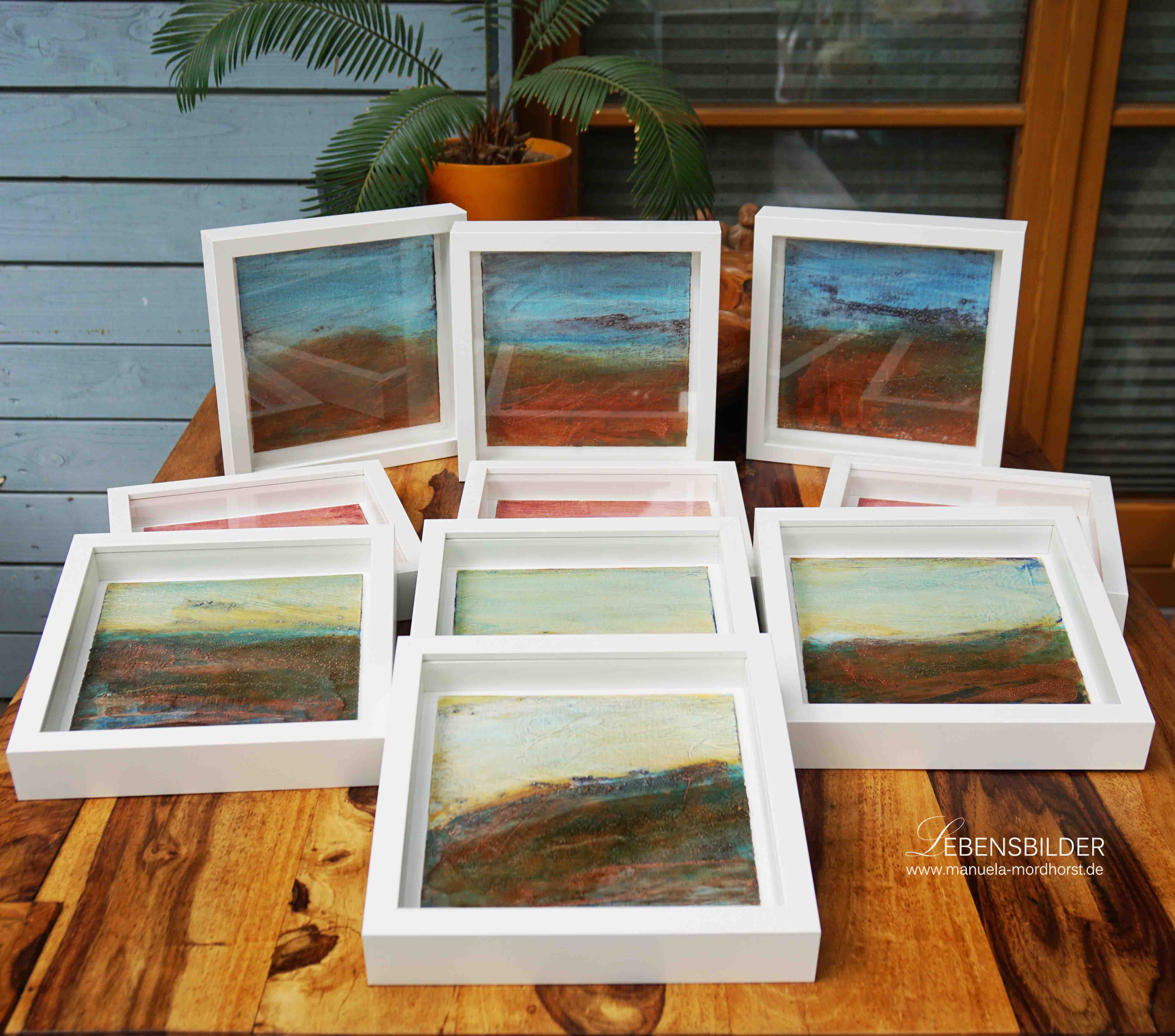 Nun endlich ist es soweit und ich kann die Mallorca Serie mal gerahmt zeigen. Hier ein kleiner Eindruck also, wie die Bilder so in einem weißen Objektrahmen wirken. Also mir persönlich gefallen sie ausgesprochen gut so 😉 Da es 20 Bilder sind, zeige ich hier nicht alle…aber damit man so einen kleinen Eindruck gewinnt, wollte ich doch mal gerne einige Aufnahmen zeigen. Das Video ist das Erste, was ich je gemacht in dieser Art, es wirkt unprofessionell, ich weiß, aber ich wollte mal einen Versuch starten 😉 Muss eben noch etwas üben.