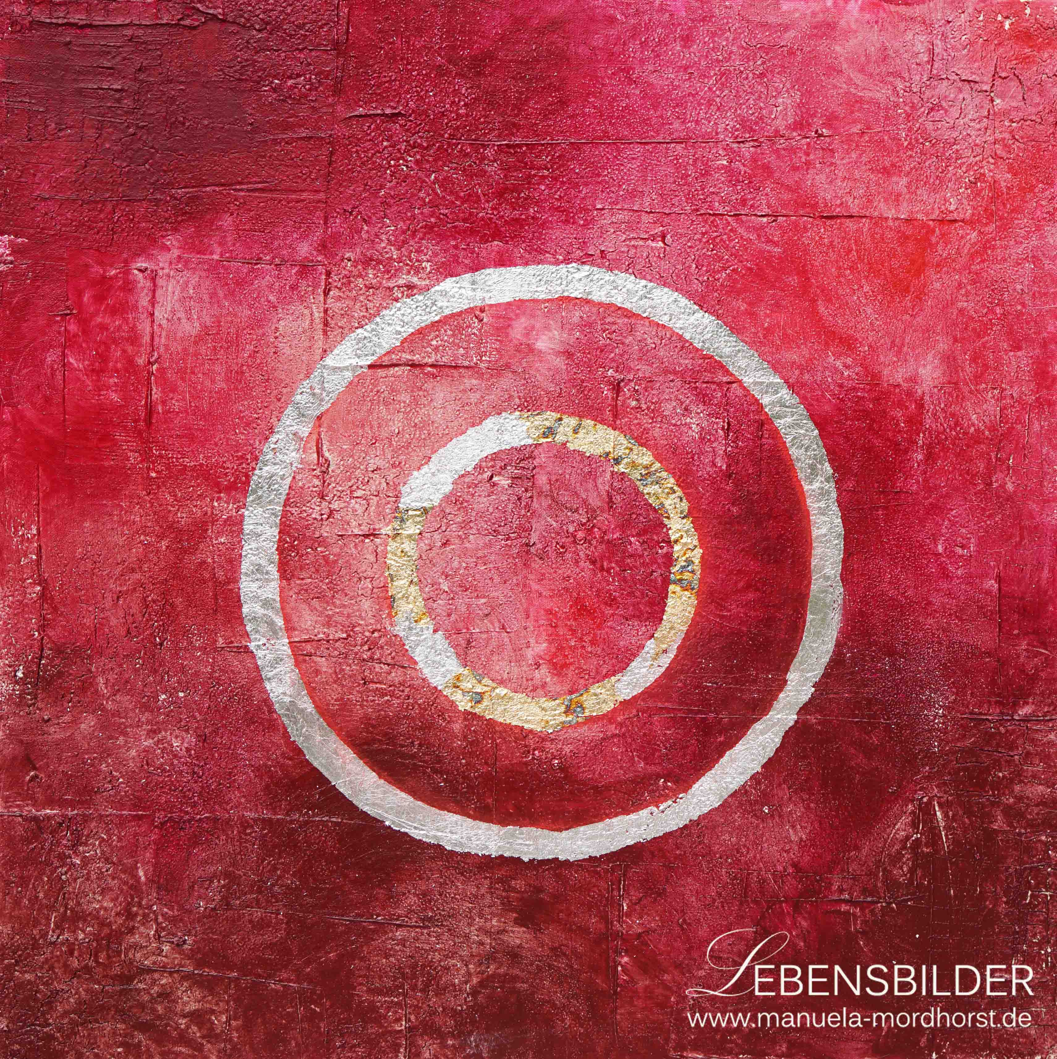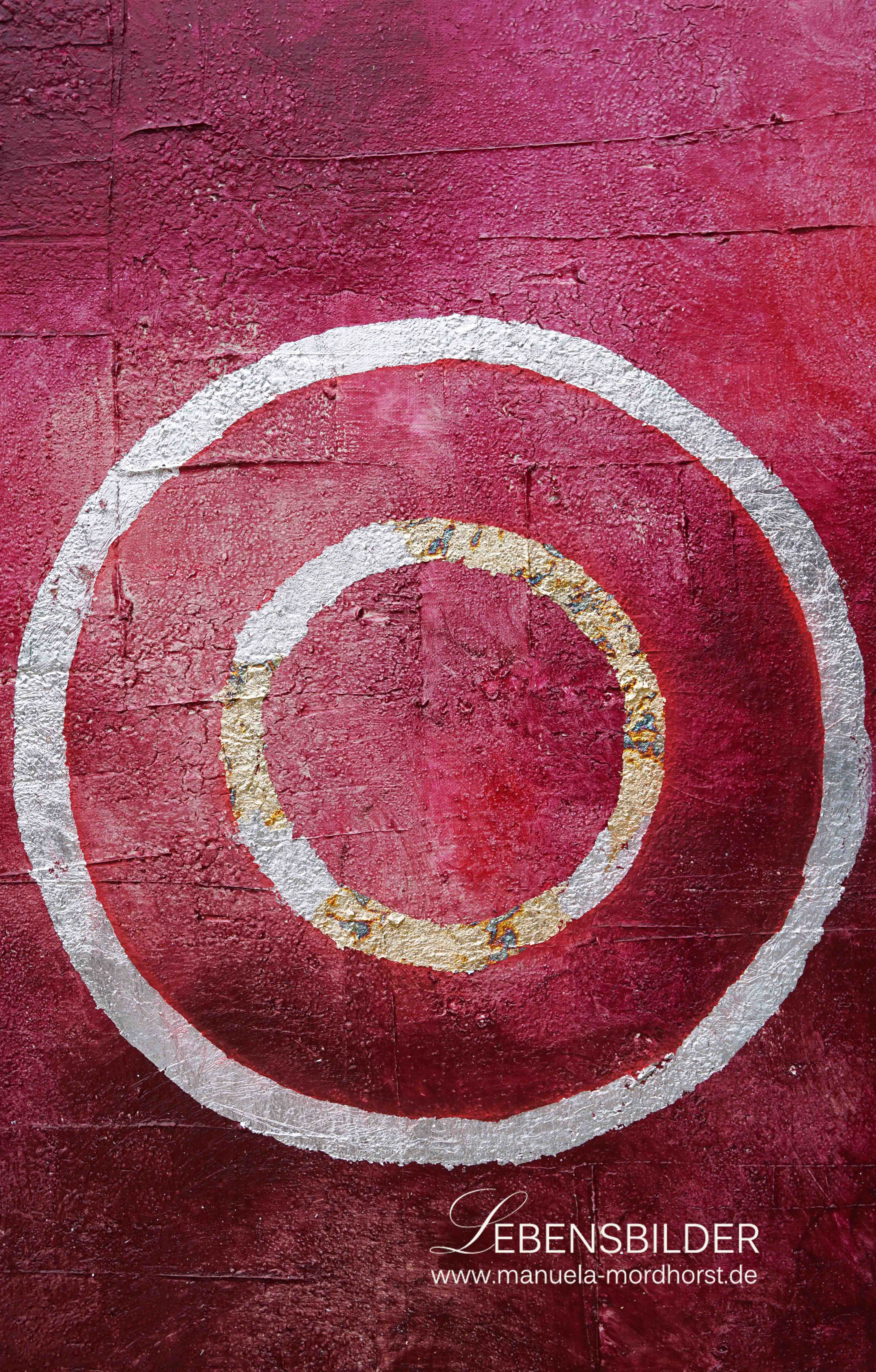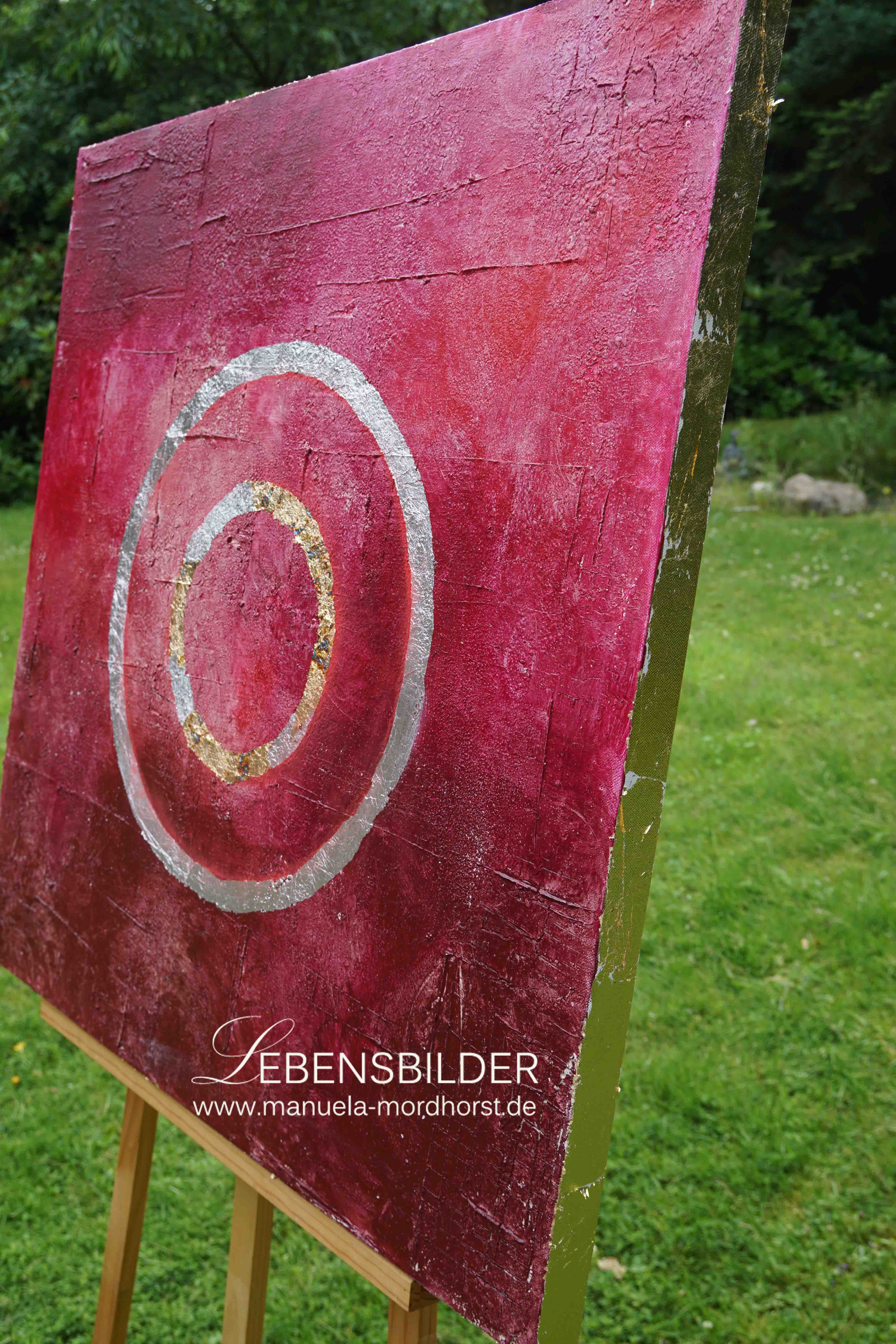 Sesshin heisst das 4. Bild der Zen Serie und bedeutet Schweigen. Der Titel passt deswegen so gut, weil ich ohne Musik, wie sonst üblich und in absoluter Stille das Bild in 5 aufeinanderfolgenden Tagen gefertigt habe. Das Bild war und ist Musik für mich, gab mir seinen eigenen Ton an, klang und schwang in mir weiter. Daher passt der Titel, denn um das Bild herum herrschte Stille.