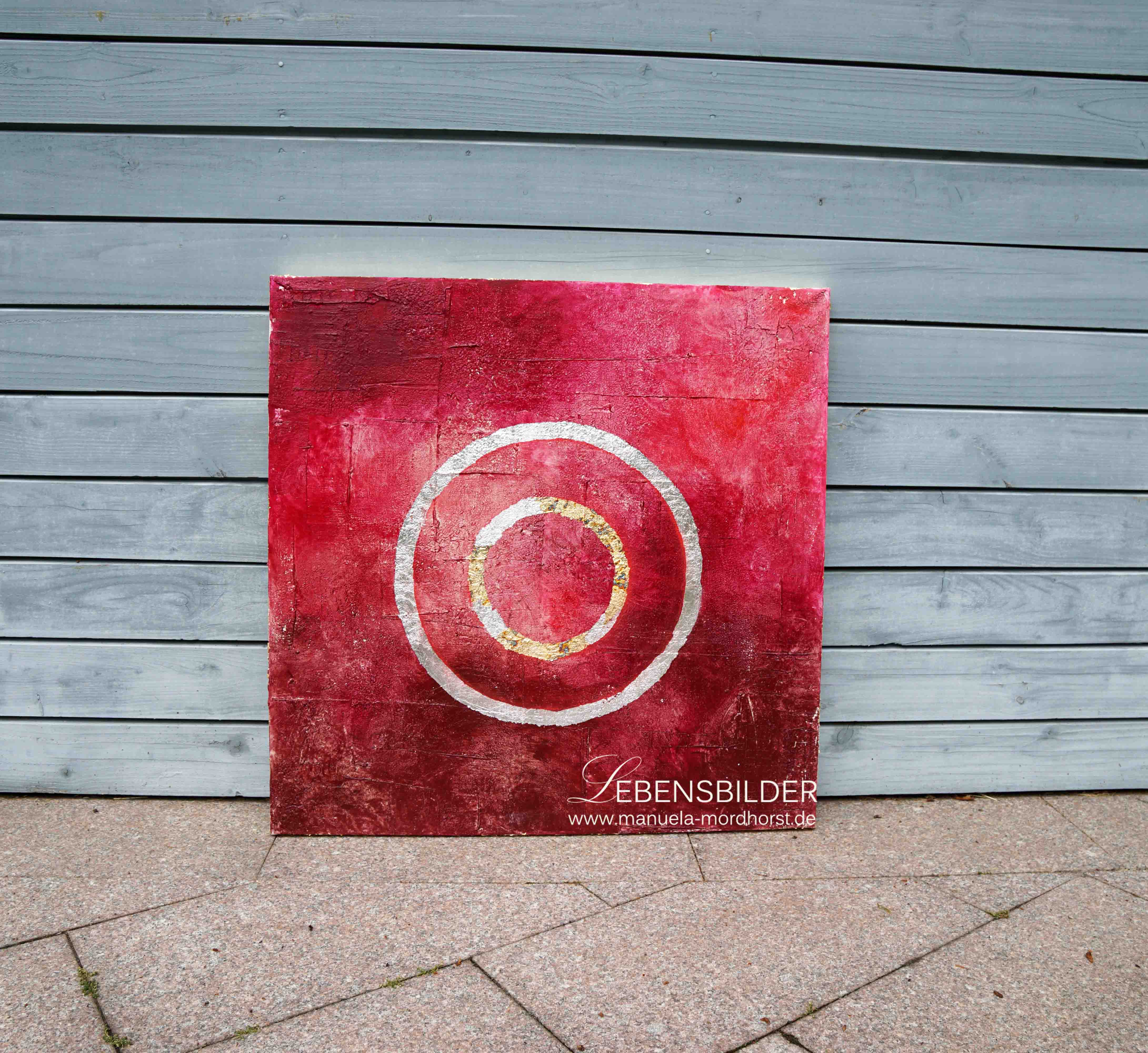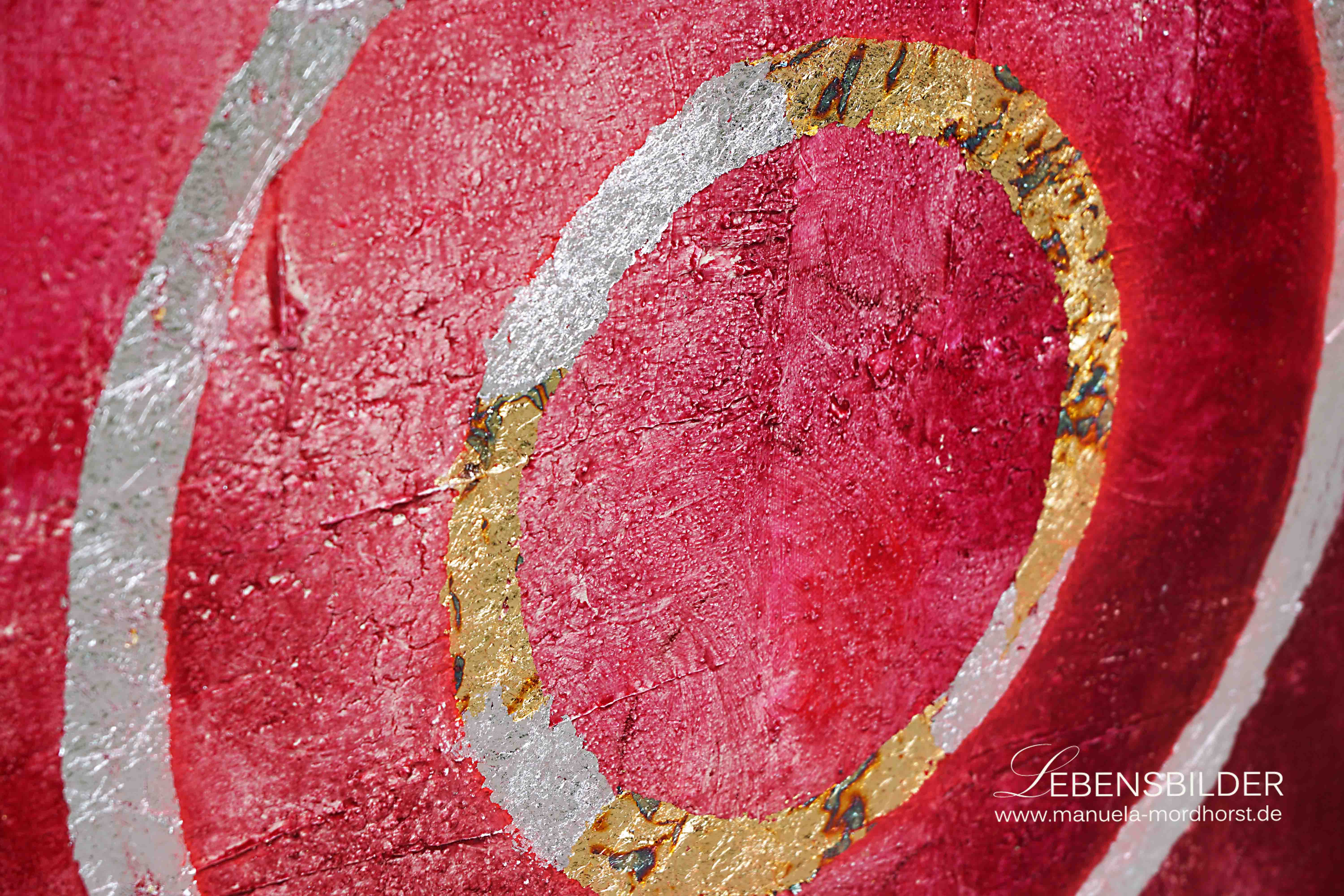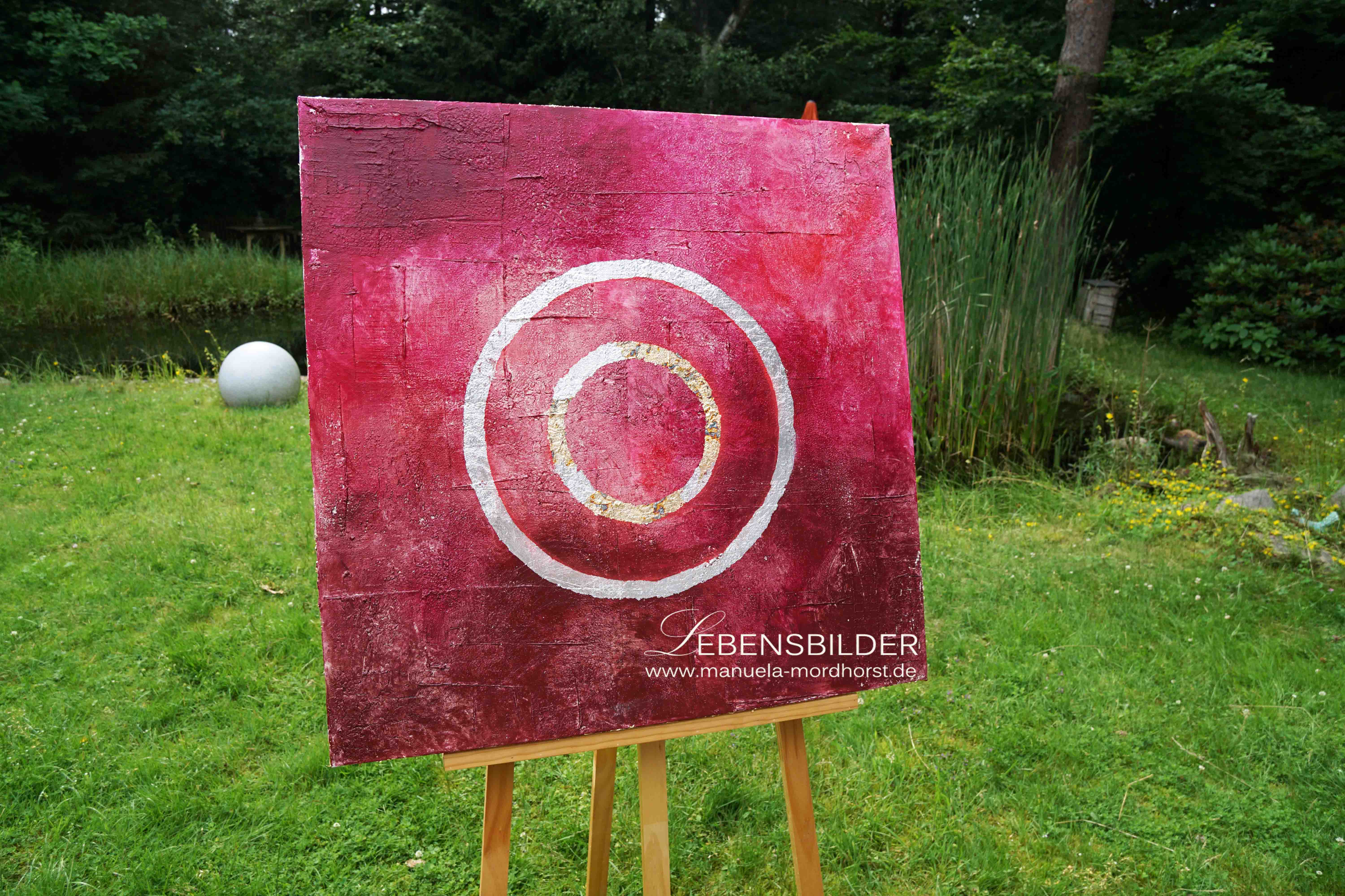 Sesshin heisst das 4. Bild der Zen Serie und bedeutet Schweigen. Der Titel passt deswegen so gut, weil ich ohne Musik, wie sonst üblich und in absoluter Stille das Bild in 5 aufeinanderfolgenden Tagen gefertigt habe. Das Bild war und ist Musik für mich, gab mir seinen eigenen Ton an, klang und schwang in mir weiter. Daher passt der Titel, denn um das Bild herum herrschte Stille.