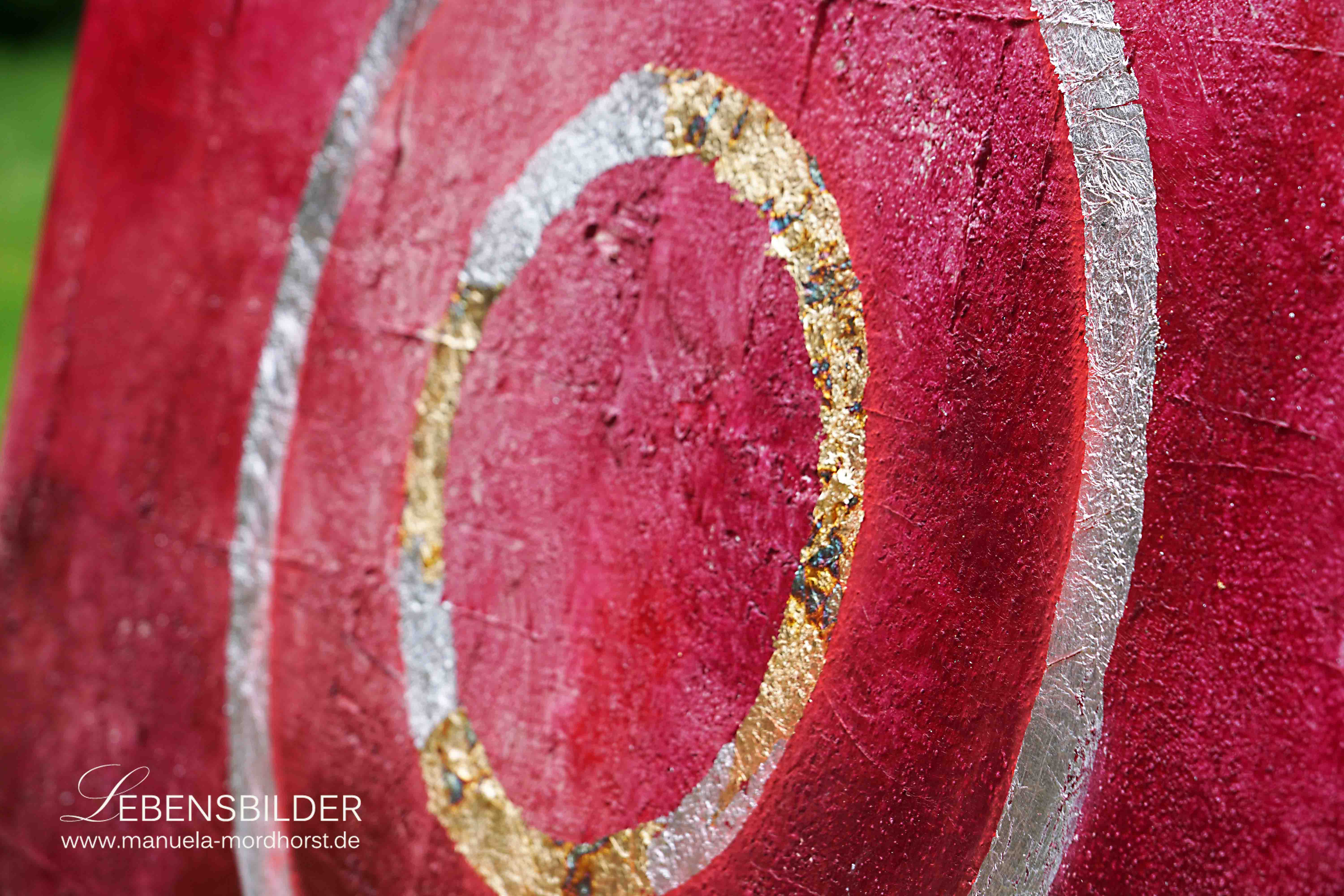 Ich habe als Untergrund wieder Champagnerkreide gewählt in Kombination mit Pigmenten und Leim. Der Grundton ist magentafarben gehalten.