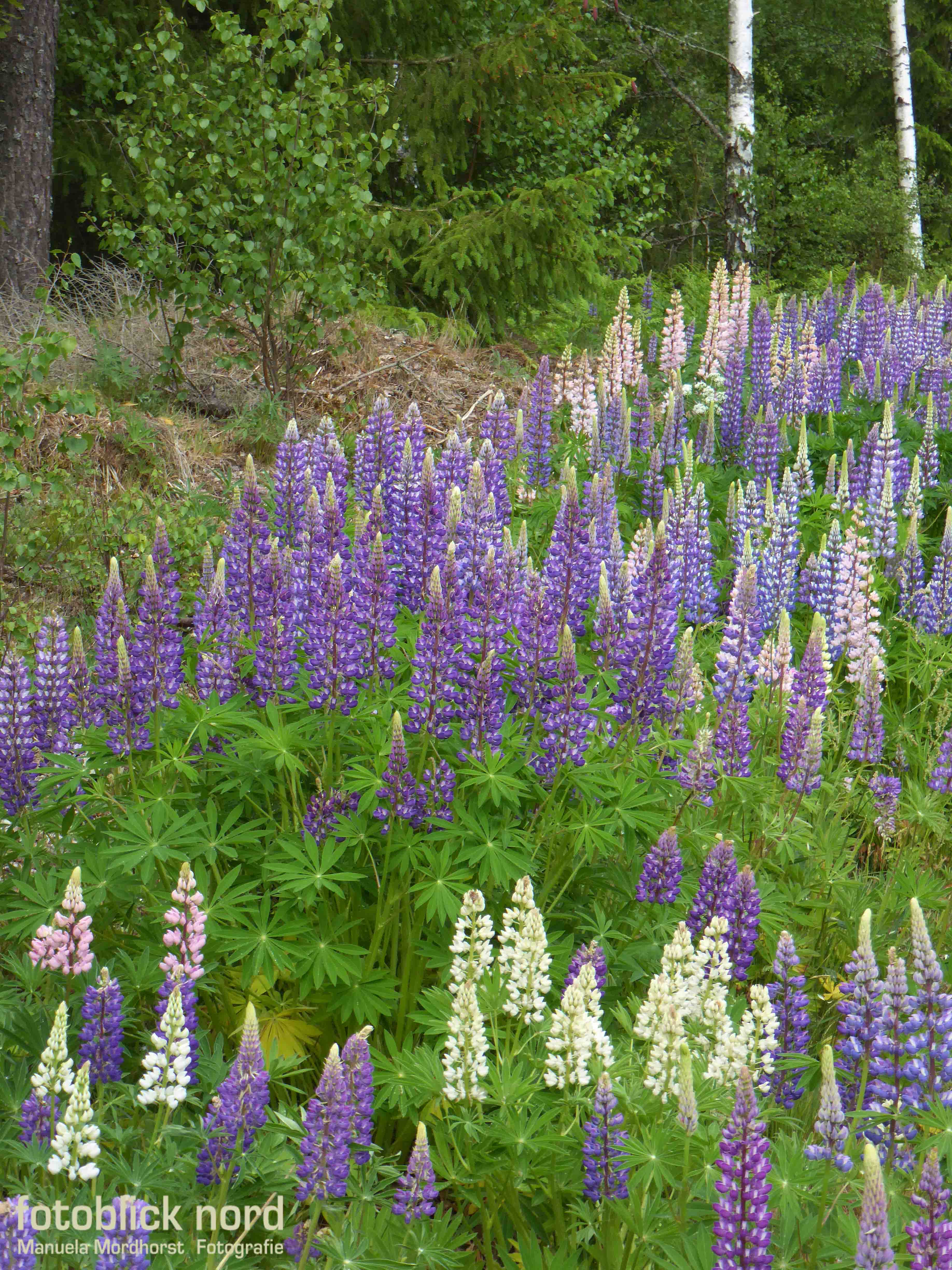Wenn die Lupinen in Schweden blühen, dann weiß man spätestens, dass der schwedische Sommer da ist. In der letzten Maiwoche zeigten sich die Lupinen in ihrer vollen Pracht, überall am Weges- und Waldrand kann man die hochgereckten lilafarbenen Pflanzen bewundern. Das inspirierte mich zu folgendem Bild.